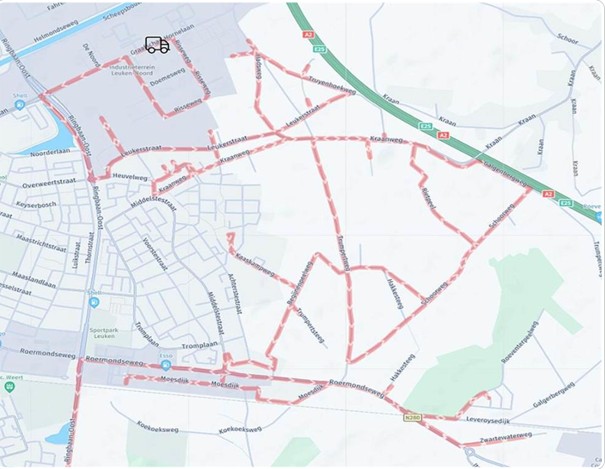 Route is hetzelfde als de reguliere woensdagroute voor het ophalen van huisvuil in Leuken en Vrouwenhof.