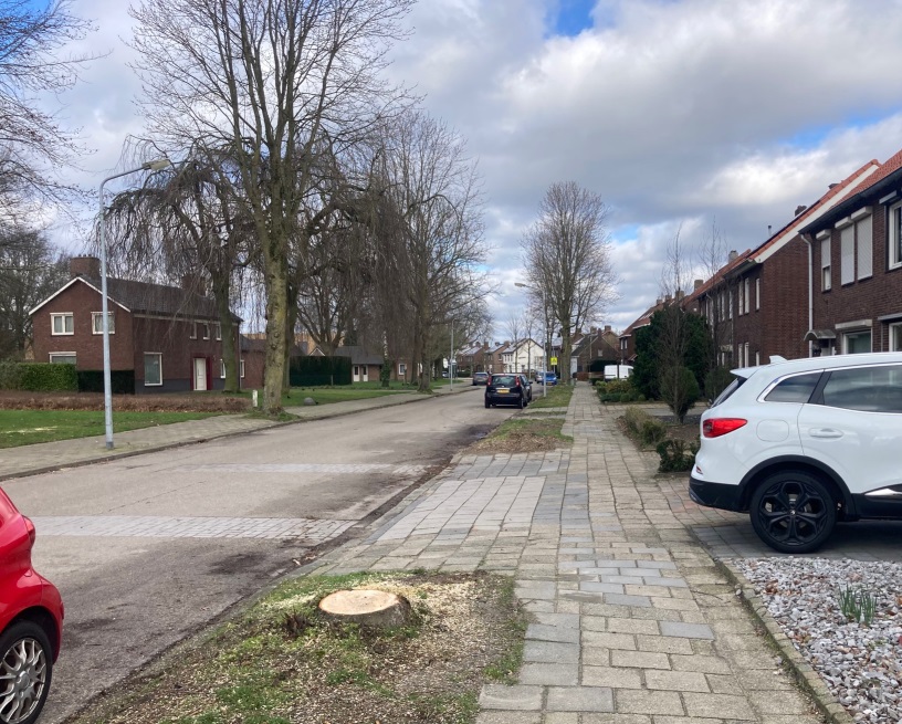 - De bomen gaan gekapt worden in verband met worteldruk die steeds erger wordt. En waardoor de toegankelijkheid van de stoepen steeds meer onder druk komt te staan. Er komen nieuwe bomen voor terug.