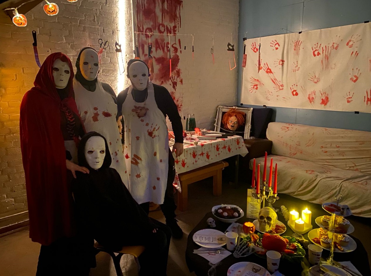In hun zoektocht kwamen de kinderen allerlei creepy figuren tegen: een tarrotlezer, cannabalen, een levend lijk, poppenspelers, een zombie, gevangenen, een priester en natuurlijk de beul. Dit alles in een fantastisch decor van kaarsen, begraafplaats, guillotine, rituelen rondom het kampvuur. Film, rook- en geluidseffecten completeerden het spookgevoel.