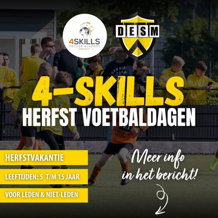 In de herfstvakantie organiseert DESM samen met ๐ฐ-๐ฆ๐ธ๐ถ๐น๐น๐ weer gave voetbaldagen in het nieuwe thema: Champions League! Deze dagen zijn bedoeld voor alle voetballiefhebbers van ๐ฑ ๐/๐บ ๐ญ๐ฑ ๐ท๐ฎ๐ฎ๐ฟ (dus ook niet-leden).