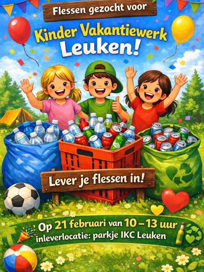 Morgen (21 februari) gaat de enthousiaste leiding van KVW de wijk in om flessen op te halen, tussen 10:00 en 13:00 uur. Ze doen hun best, maar het lukt helaas nooit om de hele wijk rond te gaan.